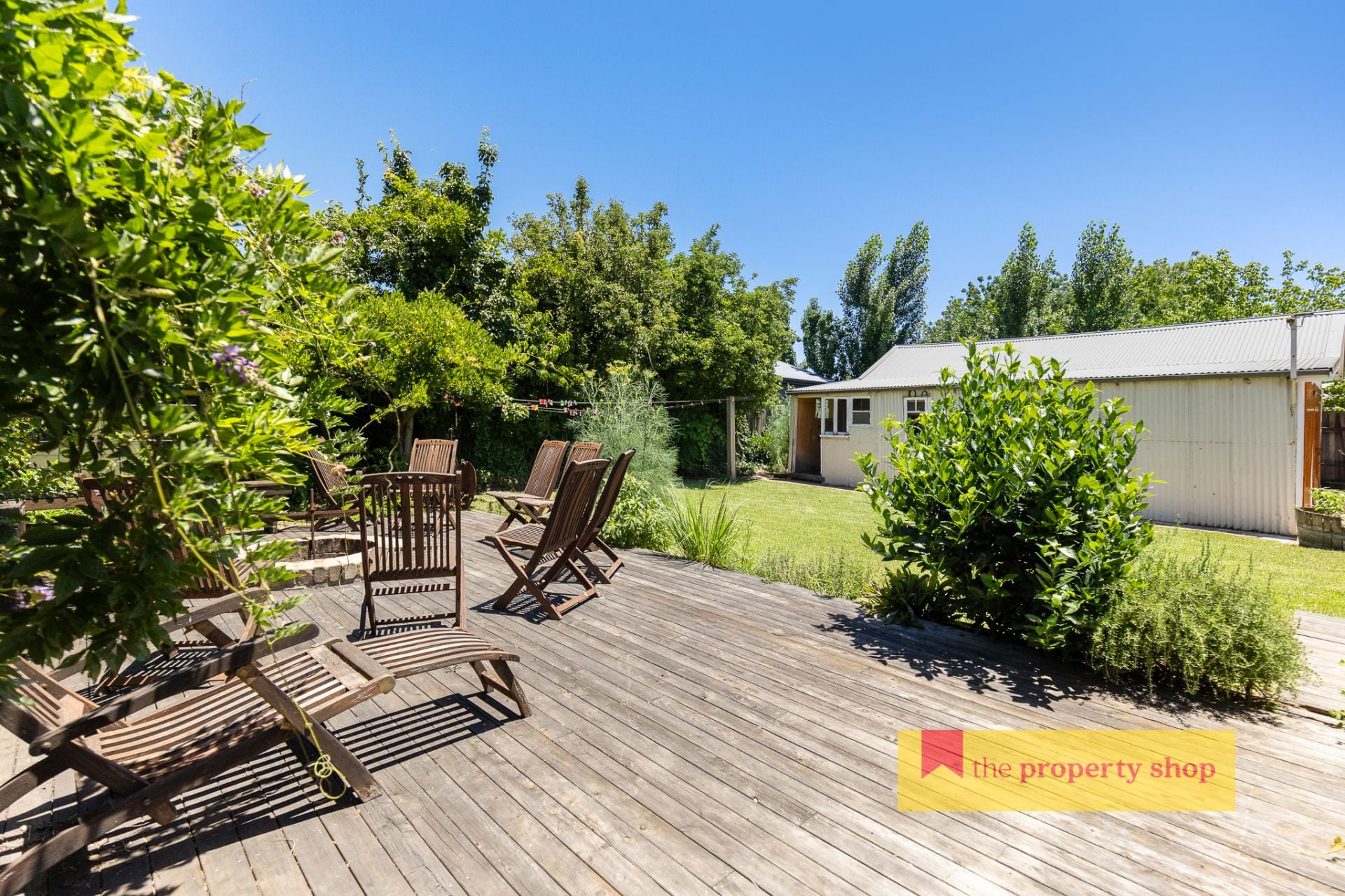 - Mature, established gardens with a large lawn area and built-in firepit