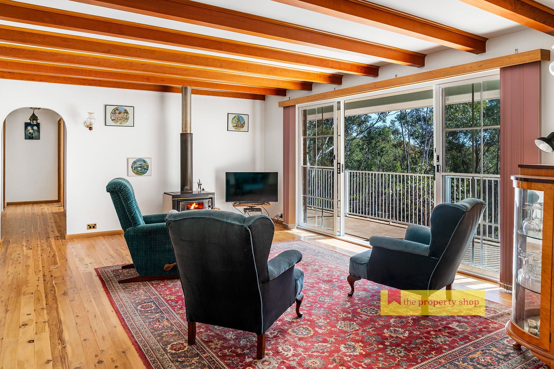 - Light-filled living space with woodfire heating, opening to peaceful outdoor surrounds