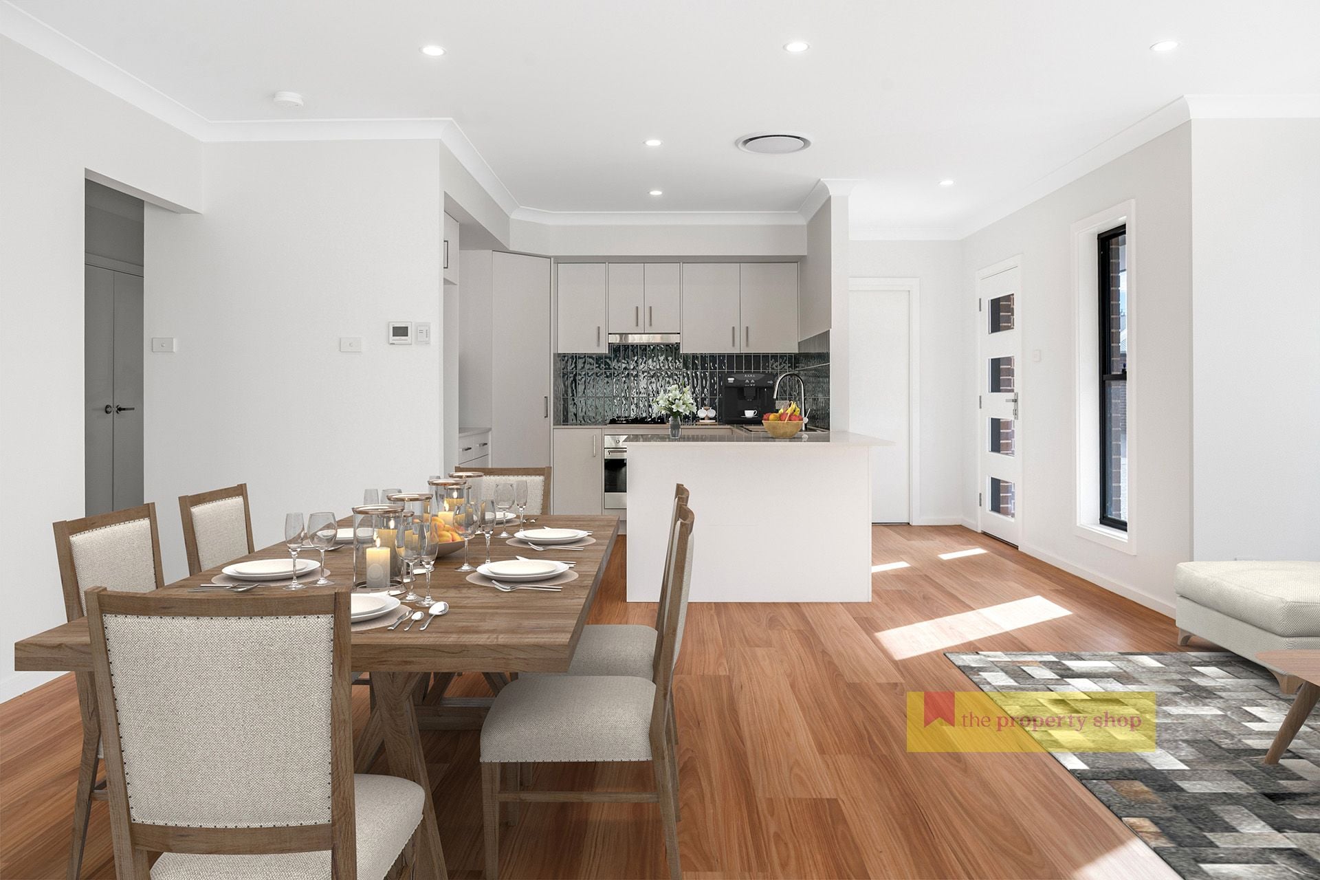 - Open plan kitchen, living and dining area, light-filled entertaining space